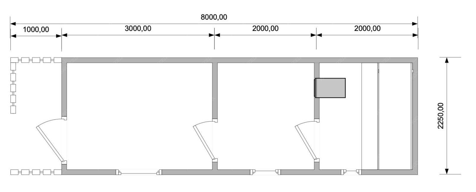 Мобильная баня «Ласа» с габаритами 8x2.25 метра предлагает предельно компактное и функциональное решение площадью 16.1 кв.м. Двухскатная крыша придает конструкции традиционный и завершенный вид, обеспечивая надежную защиту от осадков. Основной акцент сделан на эффективном использовании вытянутого пространства, где ключевым элементом выступает полноценная парная площадью 4.22 кв.м., что для сооружения таких размеров является значительным преимуществом. Внутренняя планировка построена по принципу линейного зонирования, обеспечивающего логичную последовательность от парной к моечной и далее — в зону кратковременного отдыха. Это позволяет провести весь банный ритуал, не испытывая стеснения. Мобильность конструкции обеспечивает быстрый монтаж на подготовленное основание без необходимости капитального фундамента. Идеальный выбор для небольших участков или в качестве временного и экономичного варианта, не требующего масштабного строительства, но предоставляющего все базовые возможности для качественного парения.