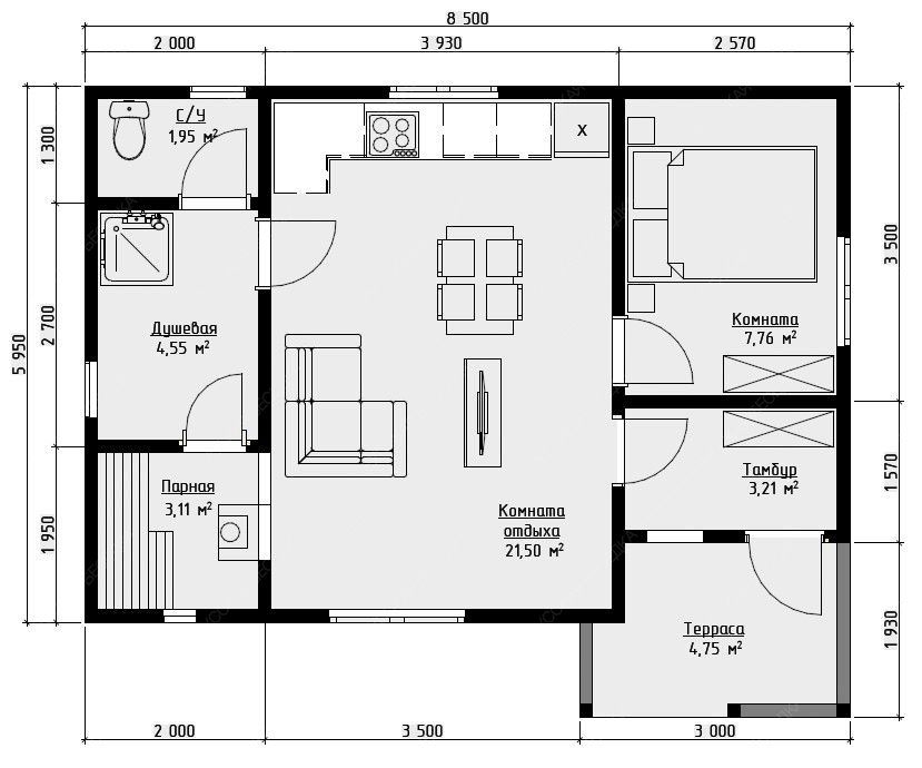 Конструкция изготовлена из хвойных пород древесины (ель, сосна)