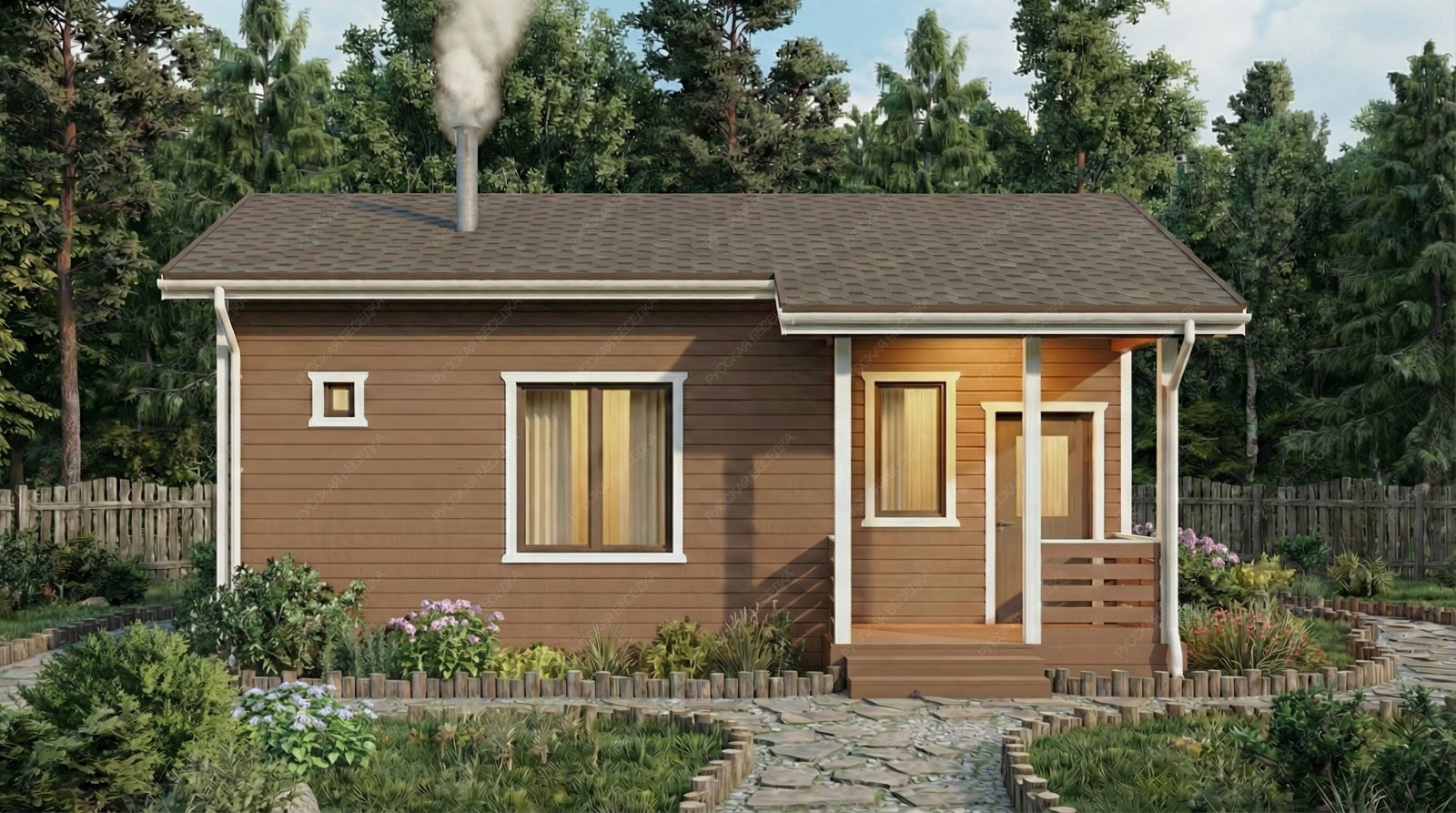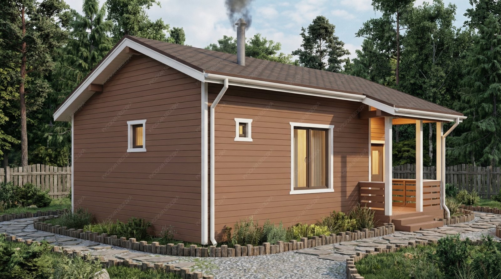 Огнебиозащита (бесцветная) или декоративный деревозащитный состав "Здоровый дом" (цвет на выбор) – нижняя обвязка, лаги, пол и цокольная доска.