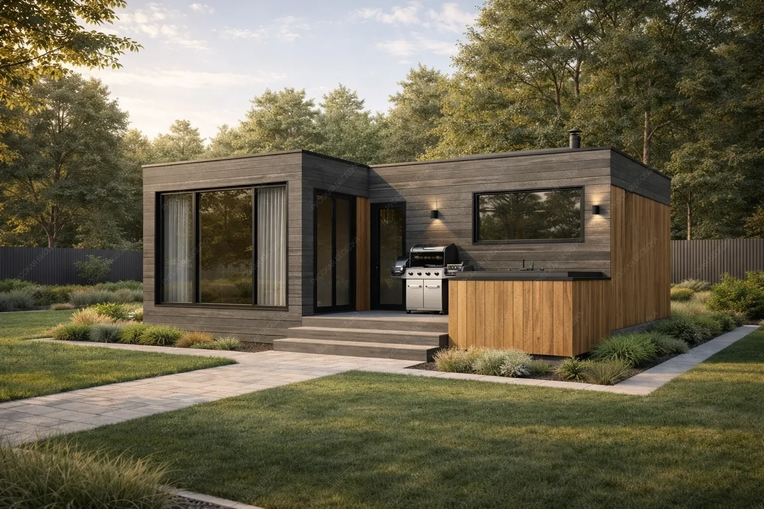 Каркасная баня «Таволга» с габаритами 6х7 метров под односкатной крышей предлагает эффективную планировку общей площадью 42 кв.м. Ее ключевая особенность — наличие полноценной кухни площадью 7.3 кв.м., что трансформирует объект из просто бани в автономное место для гостеприимства и продолжительного отдыха. Функциональная парная 5.1 кв.м., санузел и компактная комната отдыха образуют продуманный банный блок. Односкатная крыша придает сооружению современный и лаконичный внешний вид. Значительным преимуществом является открытая терраса площадью 13.8 кв.м., органично дополняющая внутреннее пространство и создающая плавный переход к окружающей среде. Такая компоновка идеальна для любителей совмещать оздоровительные процедуры с последующим застольем или чаепитием на свежем воздухе, не покидая пределов комфортного комплекса. Проект оптимален для участков, где требуется максимум функциональности при компактных размерах.