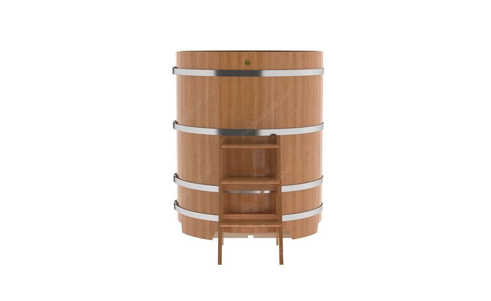 Купель круглая из дуба d=1,17 Изготовлена из дуба, имеет размер - в диаметре - 1,17 метра, высота - 1,4 метр. Поверхность купели обработана специальным, особым защитным покрытием из полиуретана – придающий поверхности купели – водостойкость – износостойкость, обладающим эластичностью. На ощупь – поверхность купели имеет приятную гладкую текстуру. Такая защита является абсолютно экологически безопасной что подтверждено государственным гигиеническим сертификатом. В случае, когда купель нужно установить на открытом воздухе – поверхность купели обрабатывае тся специальным покрытием с защитой от ультрафиолетовых лучей. В некоторых случаях, например - когда габариты купели превышают размеры дверных проемов в помещениях, доставка купели осуществляется в разобранном виде –в составе из четырех отдельных сегментов и донышка, сборка осуществляется на месте - стоимость сборки купели - уточняйте у менеджеров.