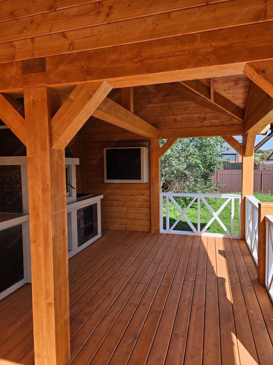Наши летние кухни изготовлены из высококачественных пород древесины, что обеспечивает их долговечность и минимальные требования к уходу. Мы используем специальные пропитки и красящие составы, которые защищают конструкцию от старения, гниения и грибковых поражений.