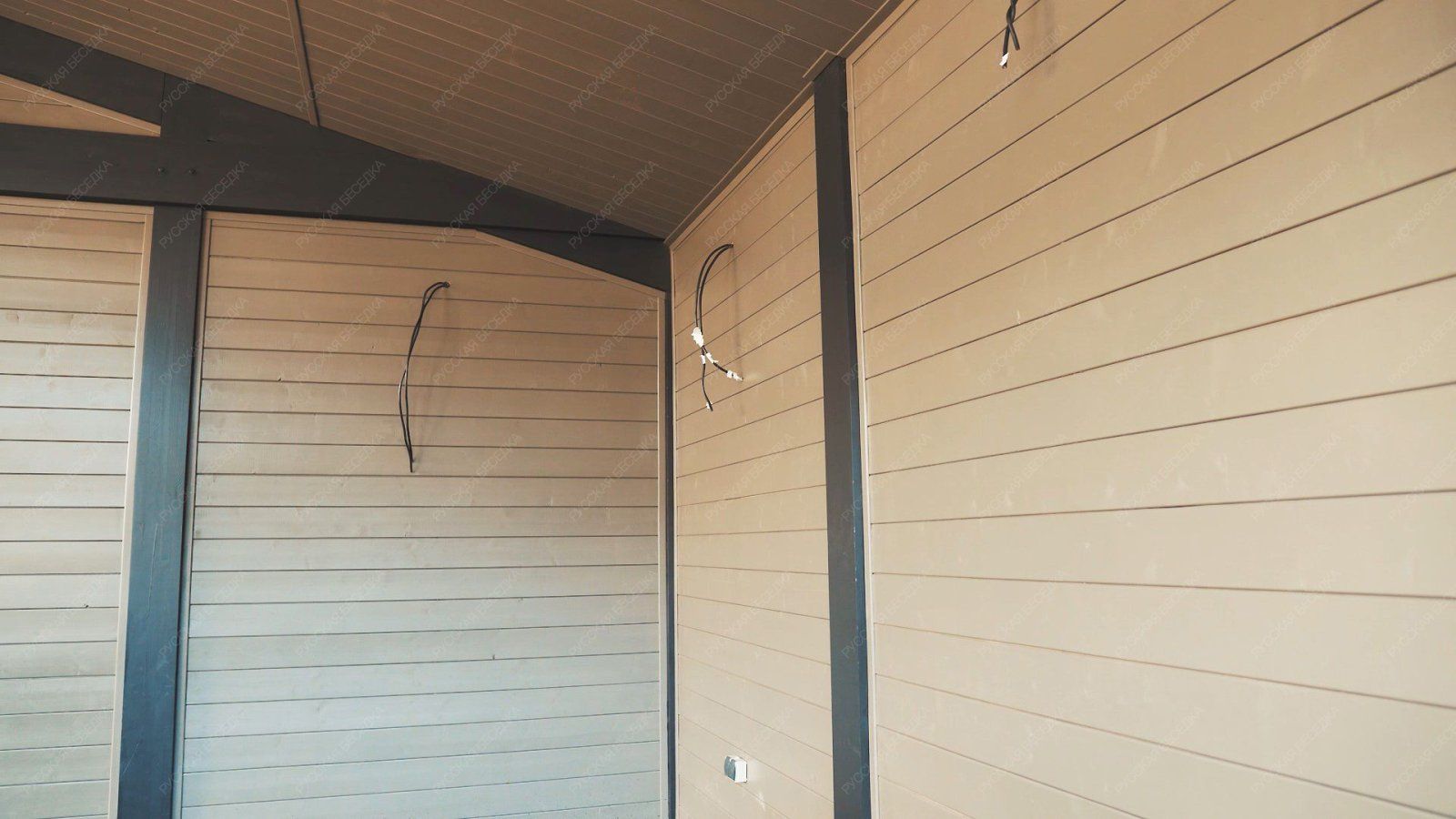 Для производства всех элементов навеса используется только отборная древесина без малейших дефектов, прошедшая камерную сушку и пропитку антисептиками. Навесу после защитной обработки лаком не страшны высокая влажность, а значит, можно быть уверенным, что дерево не растрескается, не разбухнет и не покоробится.
