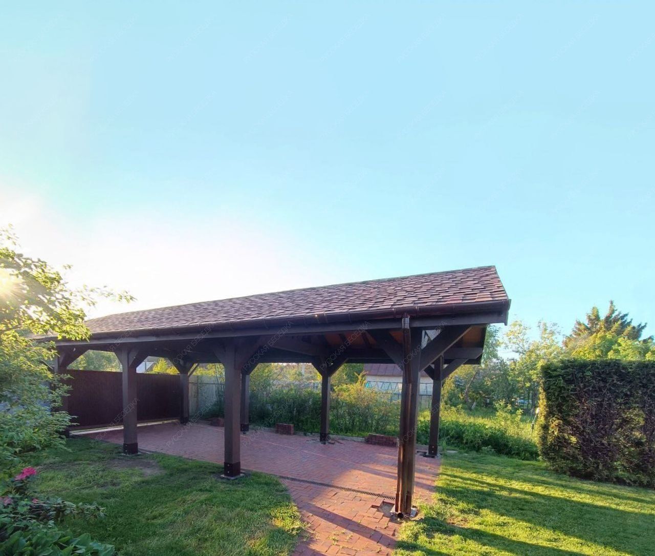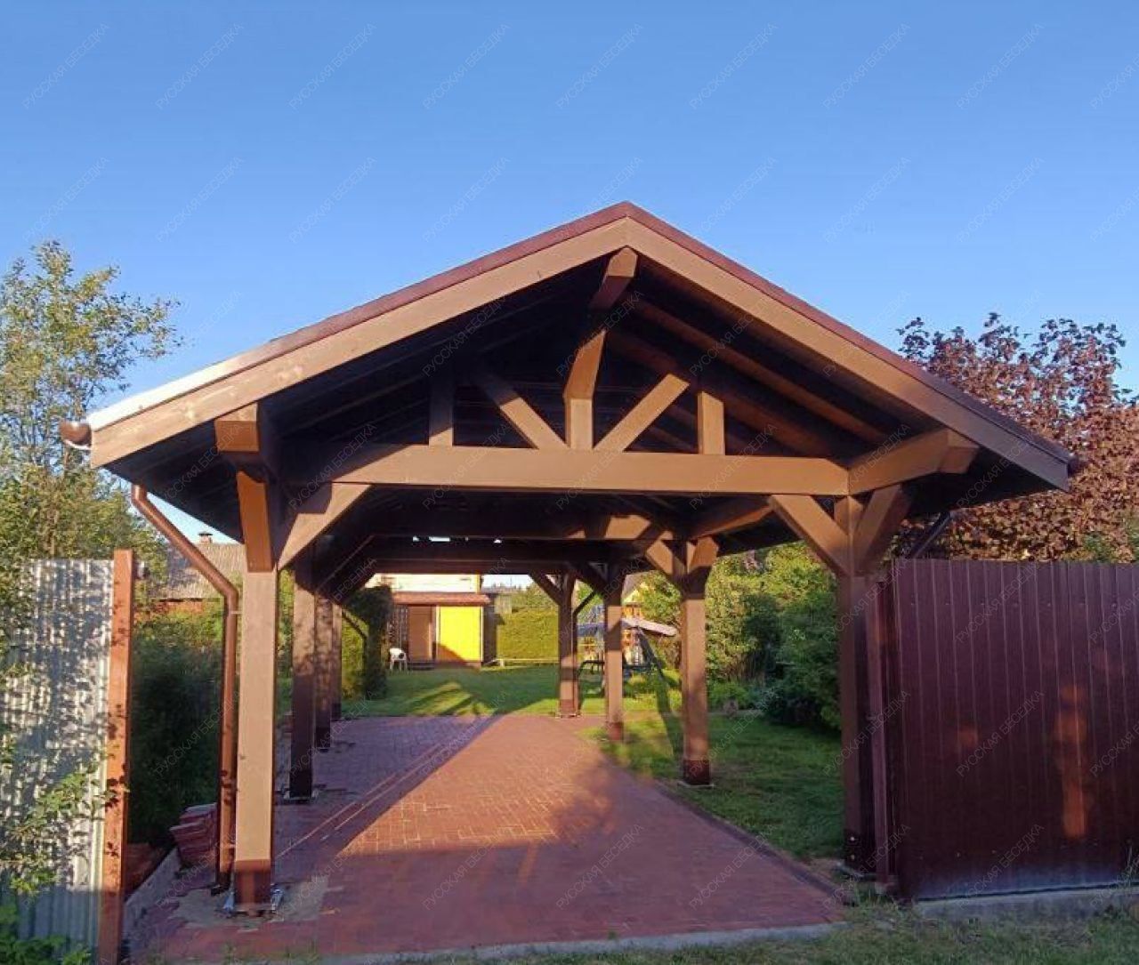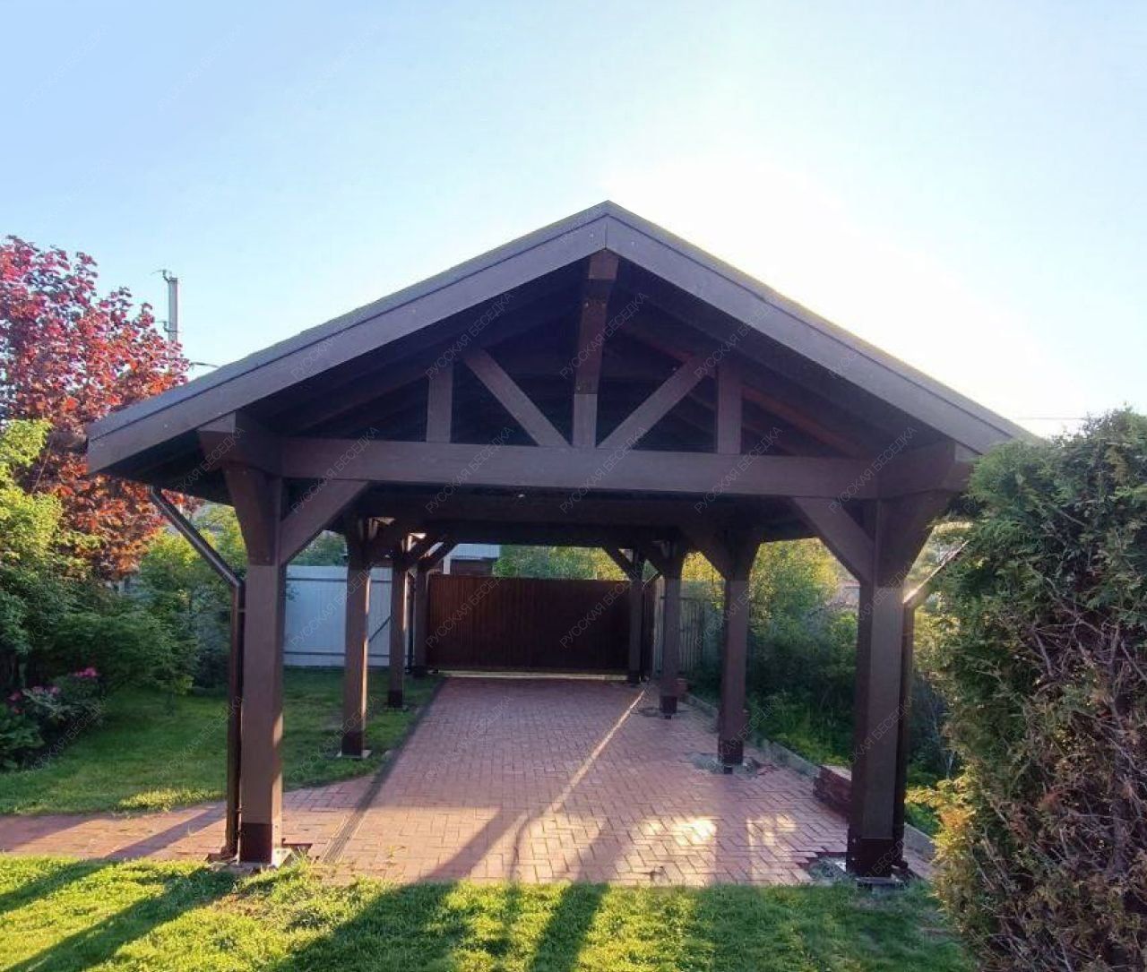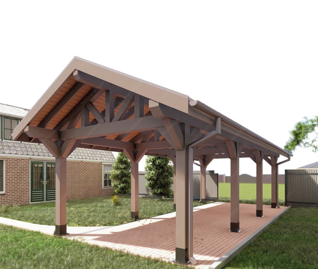 Навес из дерева послужит отличным парковочным местом для одного или нескольких автомобилей.