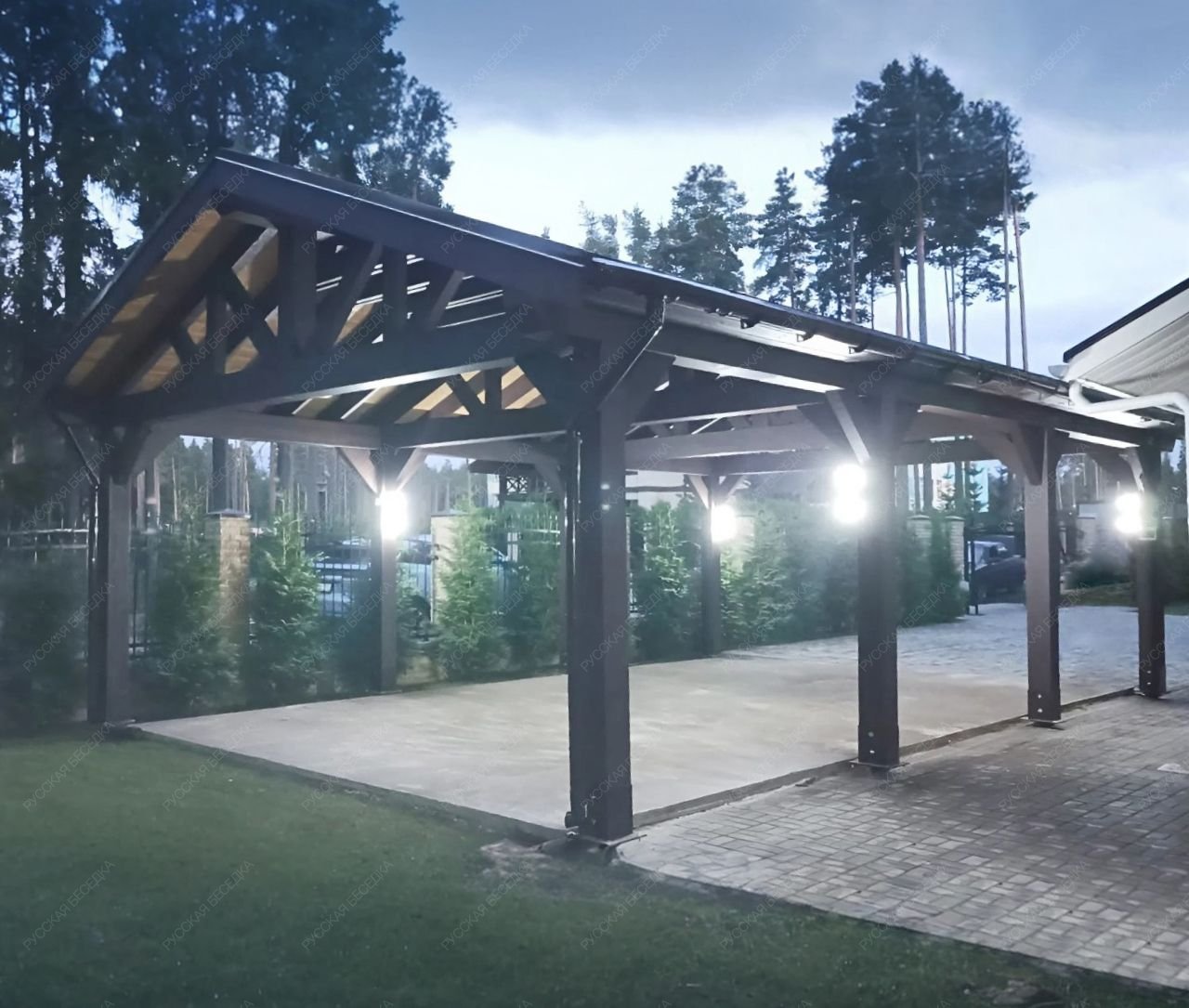 Навес из дерева послужит отличным парковочным местом для одного или нескольких автомобилей.
