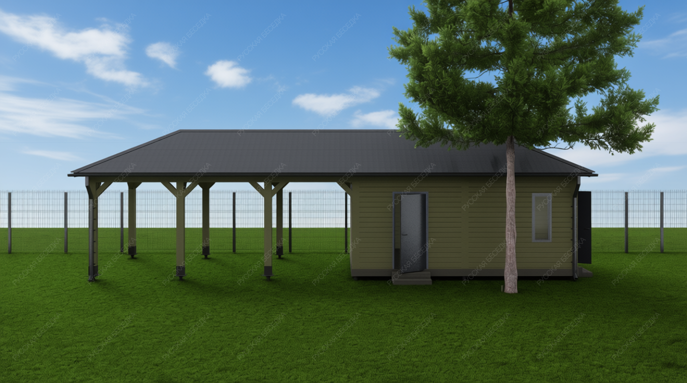 Навес для машин с двумя хозблоками ПРАКТИК (полный комплект для сборки) 1 047 700 р
