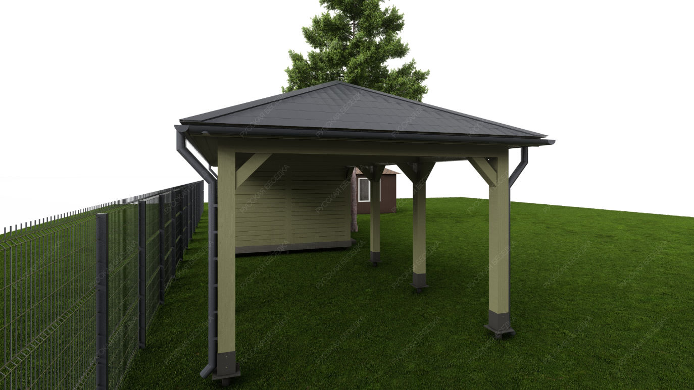 Для производства всех элементов навеса используется только отборная древесина без малейших дефектов, прошедшая камерную сушку и пропитку антисептиками. Навесу после защитной обработки лаком не страшны высокая влажность, а значит, можно быть уверенным, что дерево не растрескается, не разбухнет и не покоробится.