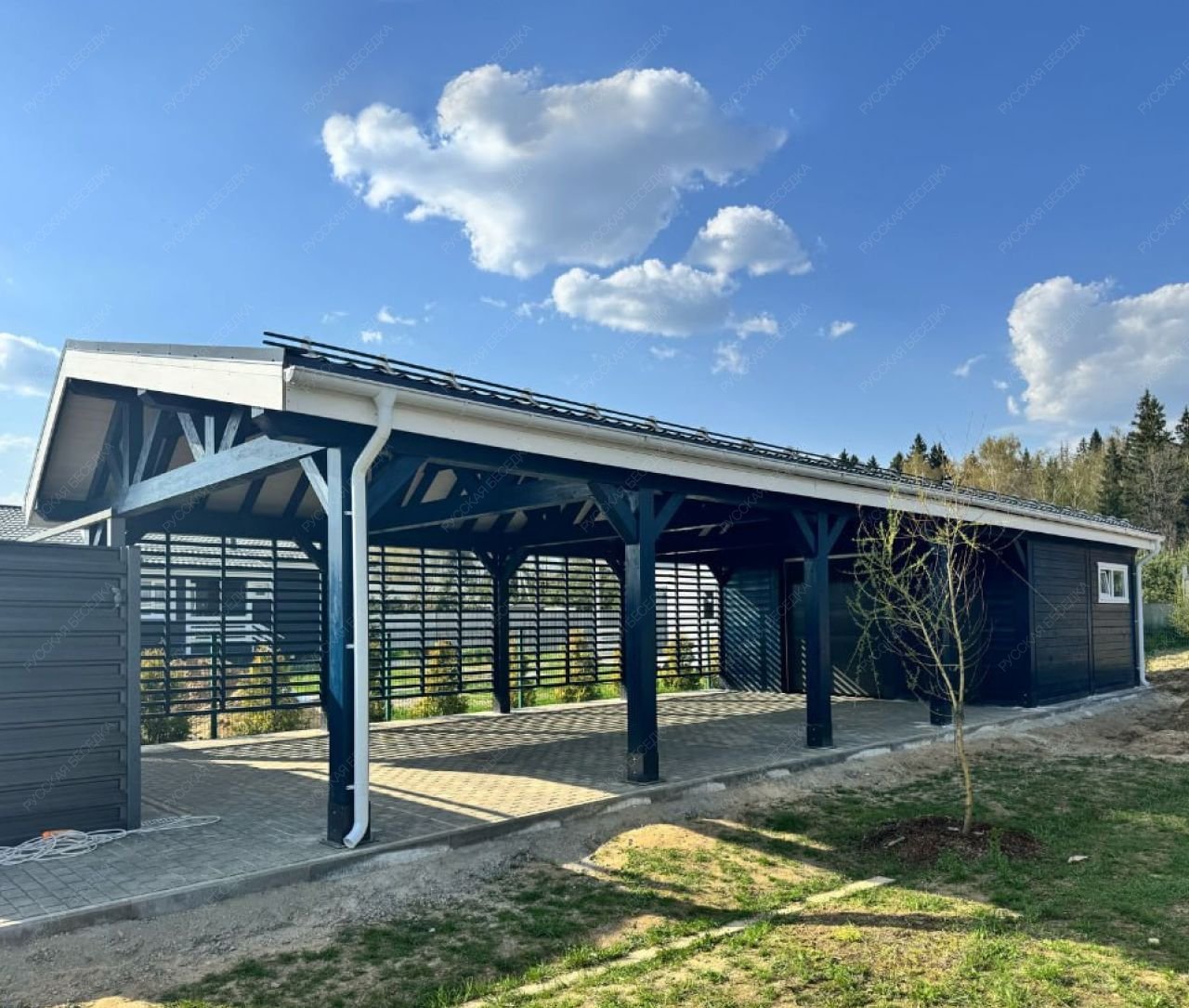 Навес для машин с хозблоком ЛАРОЛЕС (полный комплект для сборки) 1 876 800 р