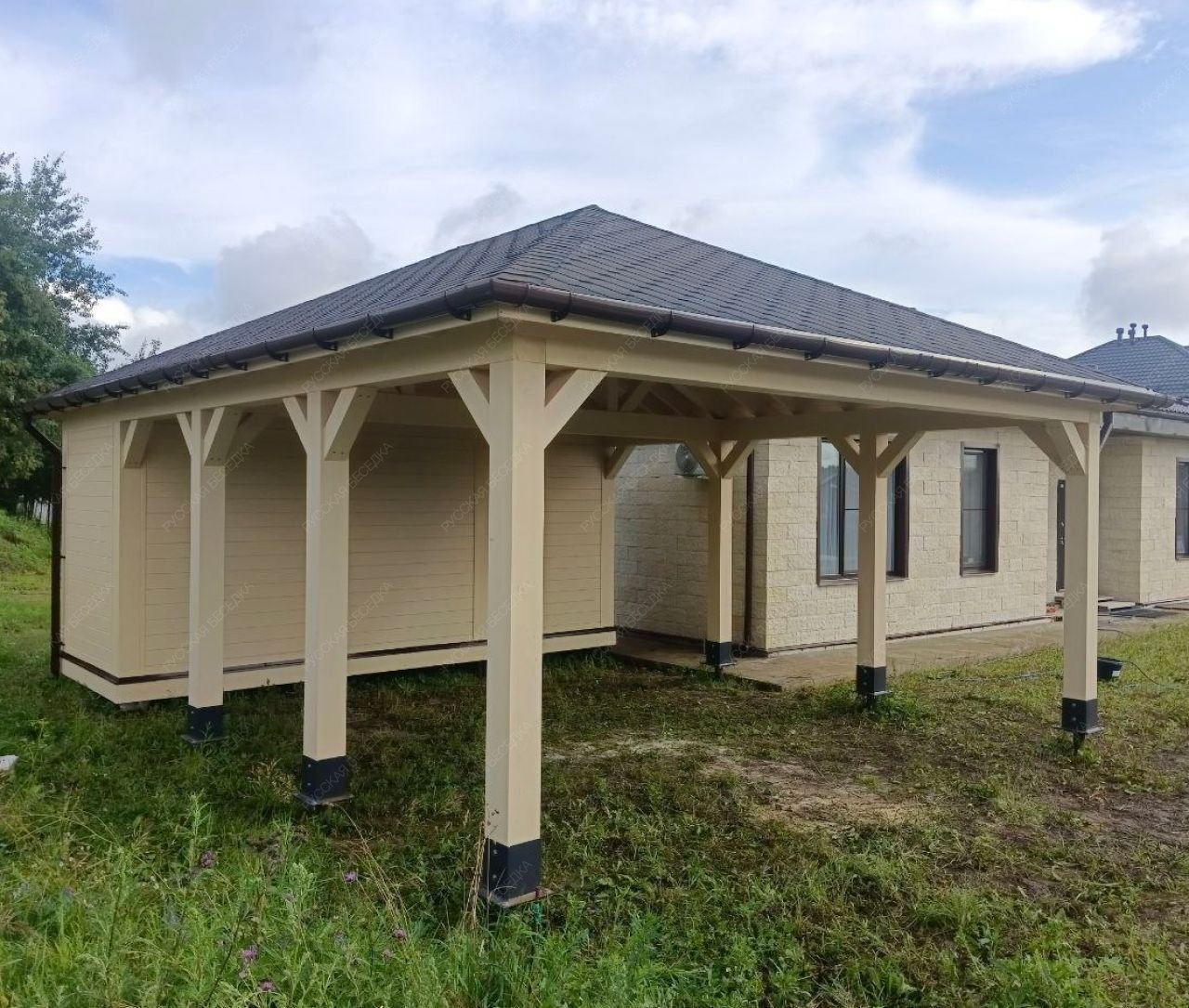 Навес из дерева послужит отличным парковочным местом для одного или нескольких автомобилей.