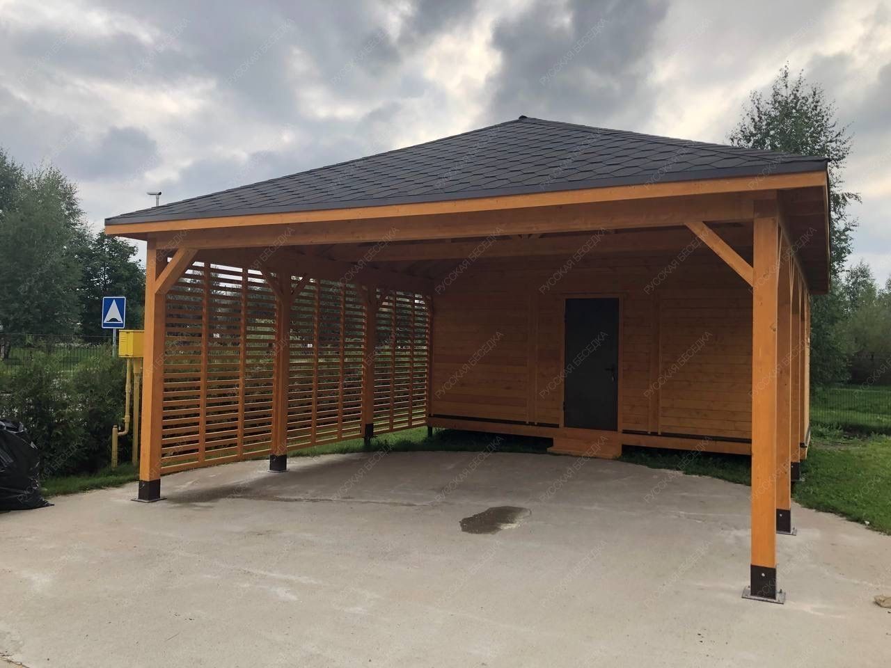 Навес из дерева послужит отличным парковочным местом для одного или нескольких автомобилей.