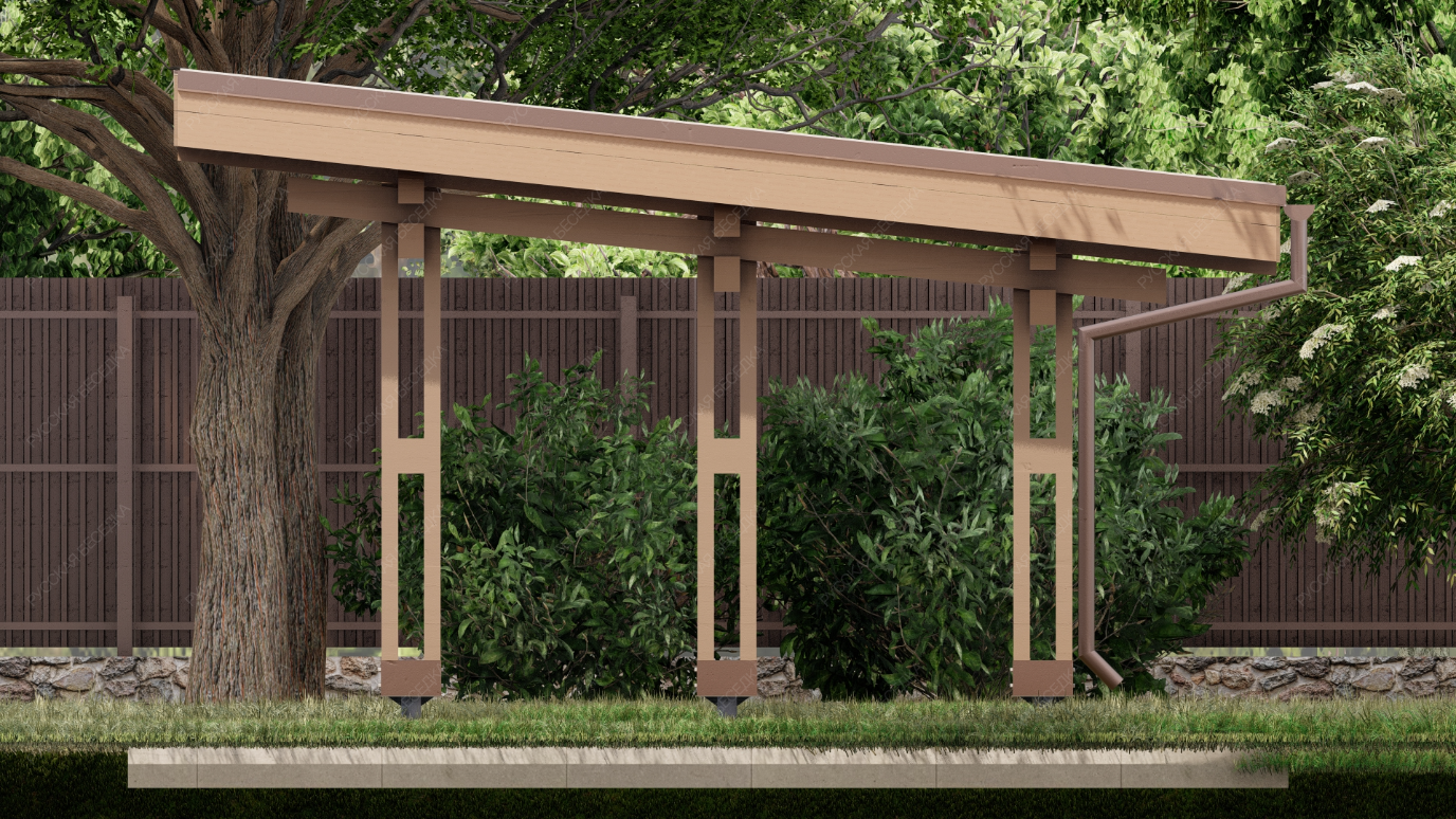 Навес из дерева послужит отличным парковочным местом для одного или нескольких автомобилей.