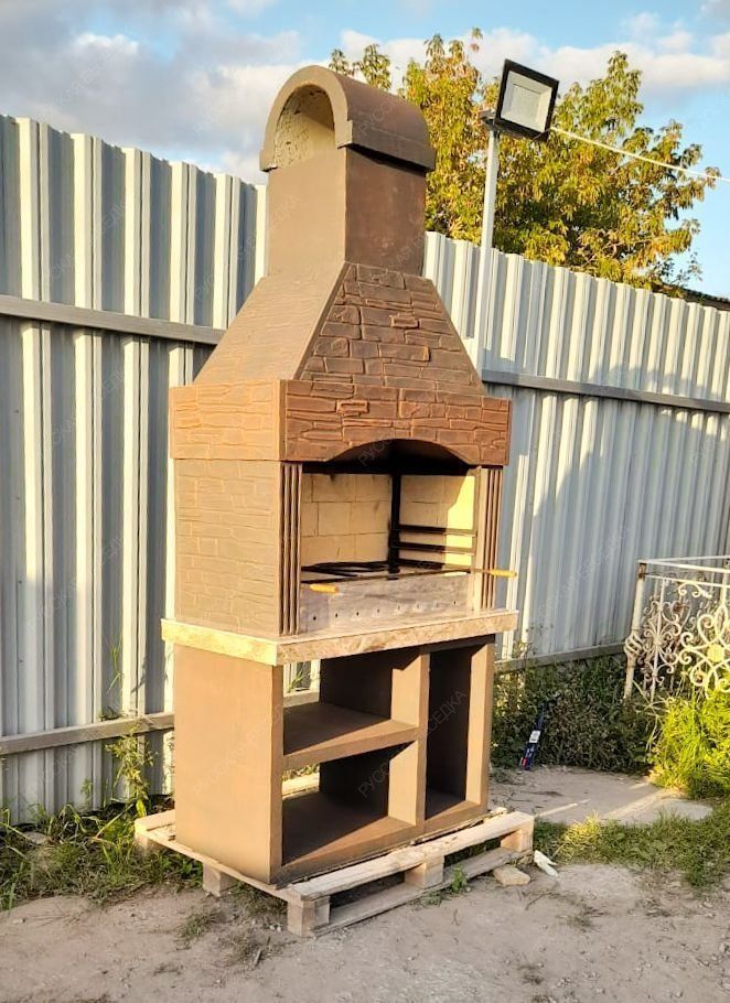 Барбекю-печь сделана из армированного огнеупорного бетона с добавлением керамзита.