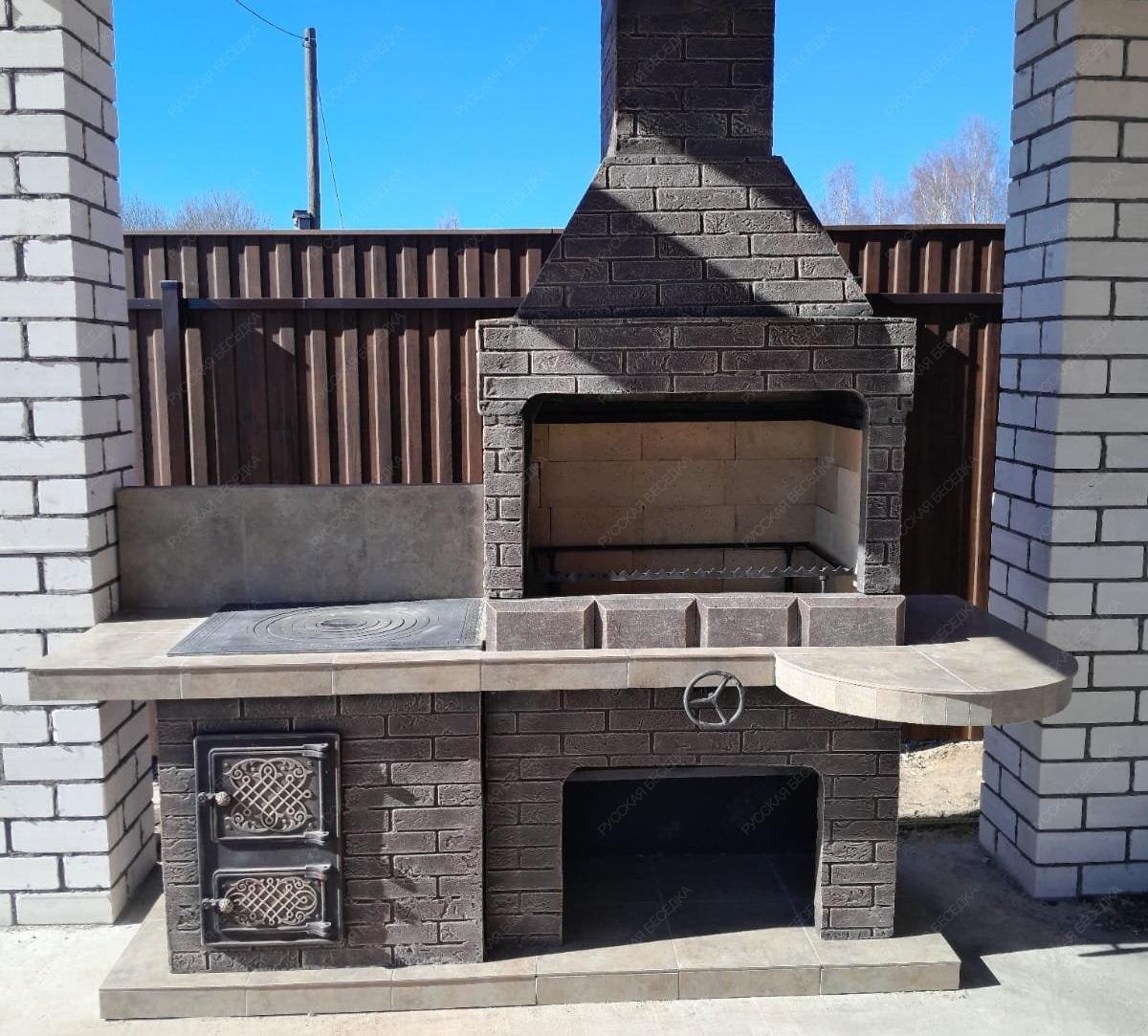Печь № 20А — Печь Барбекю с большой топкой и печью под казан (фактура под кирпич)