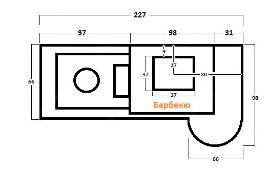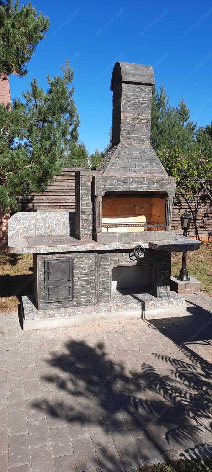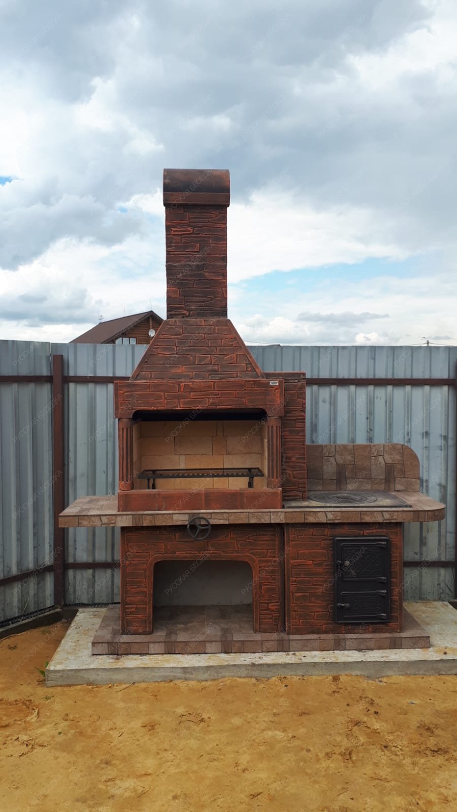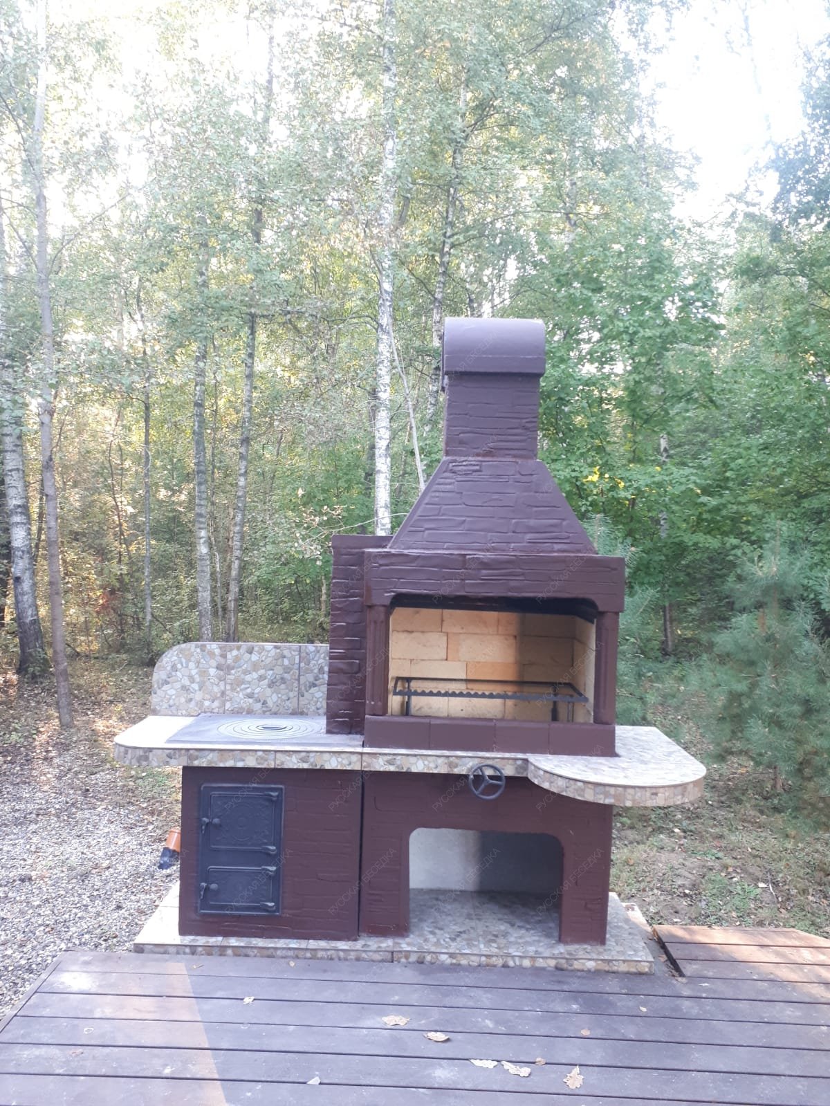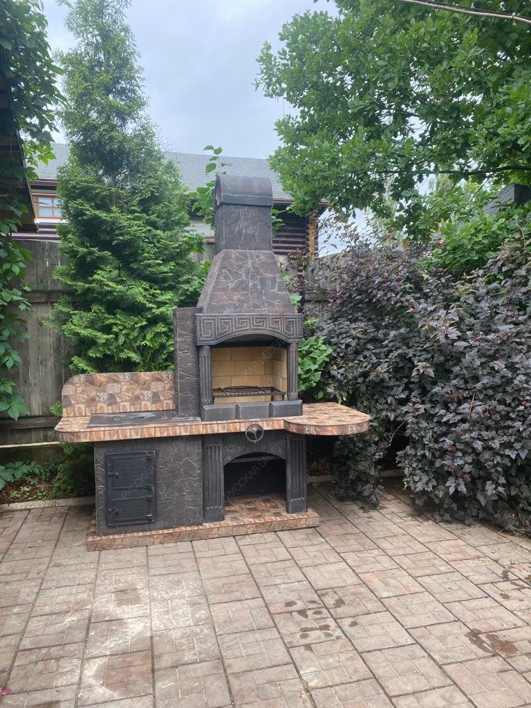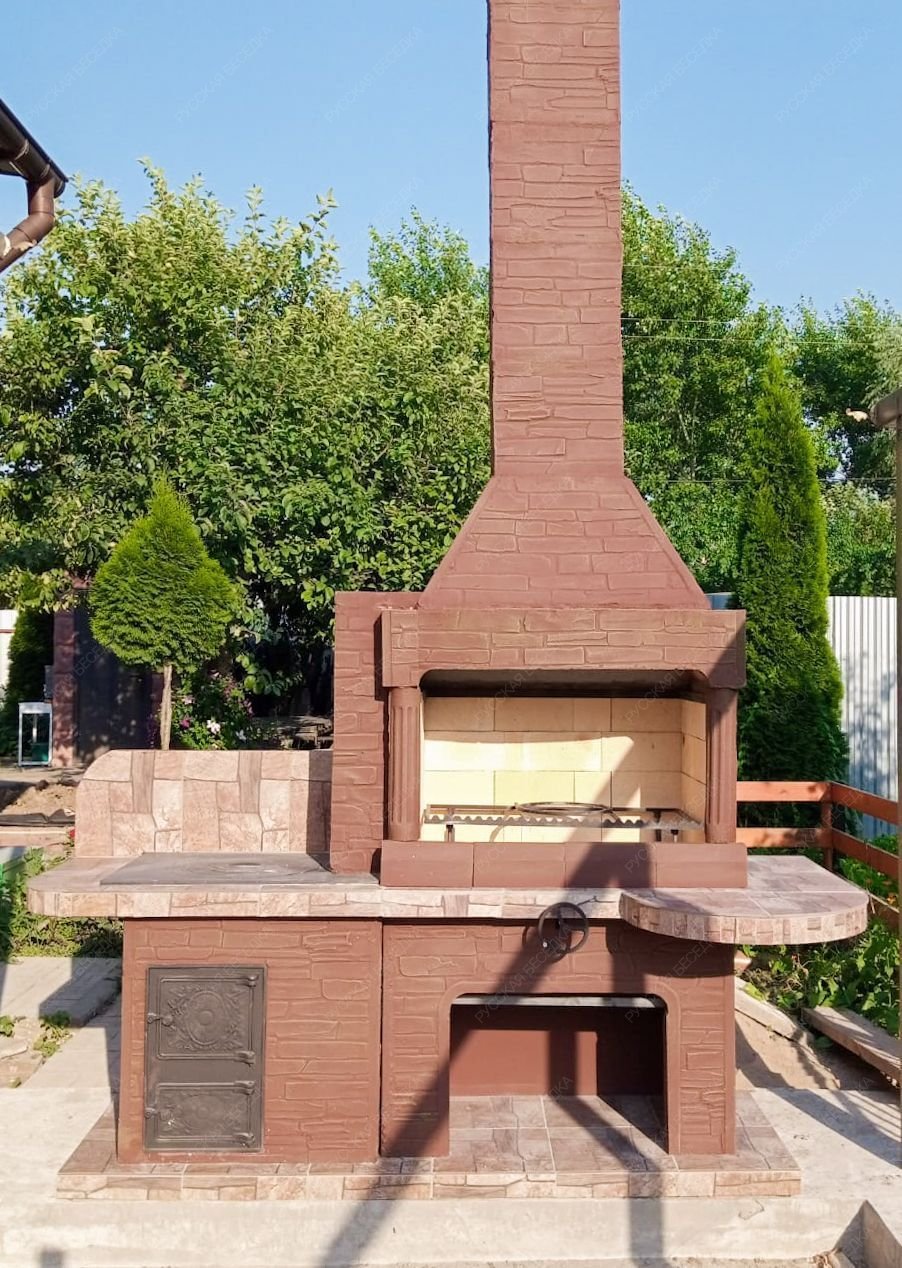 Барбекю-комплекс сделан из армированного огнеупорного бетона с добавлением керамзита.