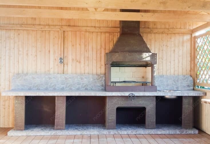 Барбекю-комплекс сделан из армированного огнеупорного бетона с добавлением керамзита.