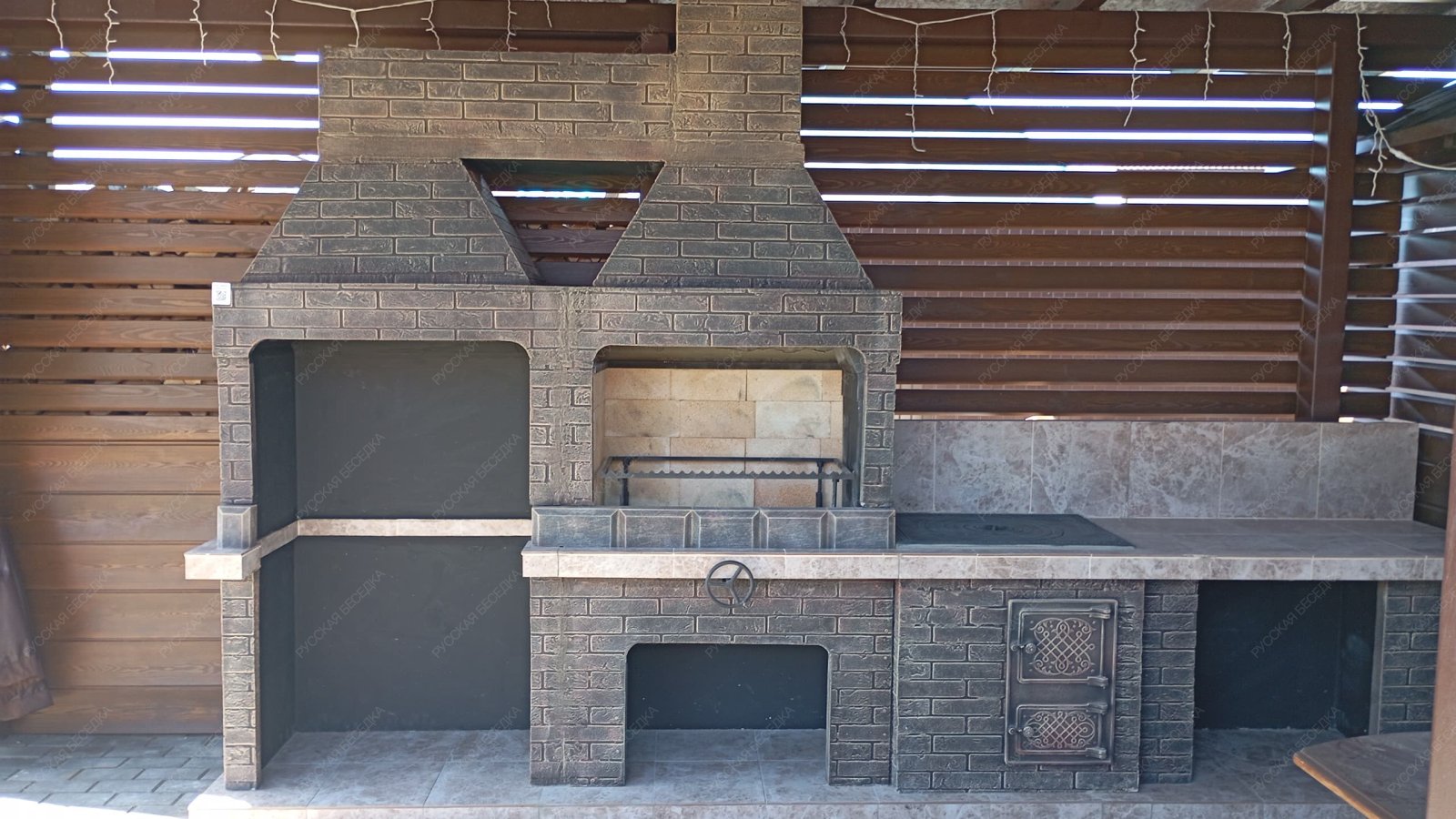 Барбекю-комплекс сделан из армированного огнеупорного бетона с добавлением керамзита.
