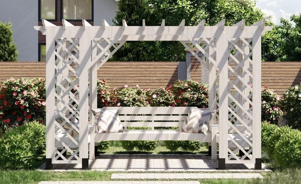 Деревянная пергола придаст вашему садовому участку теплую и уютную атмосферу.Также пергола может служить опорой для плетущихся растений - только представьте, как приятно находиться в окружении цветущего клематиса или пышных роз! Дополнительные элементы, такие как встроенное освещение, декоративные решетки, качели или скамейки, могут усилить визуальный эффект и создать еще более комфортное пространство. А если в конструкцию перголы добавить подиум, то он может служить местом для расслабления или стать сценой для семейных мероприятий.