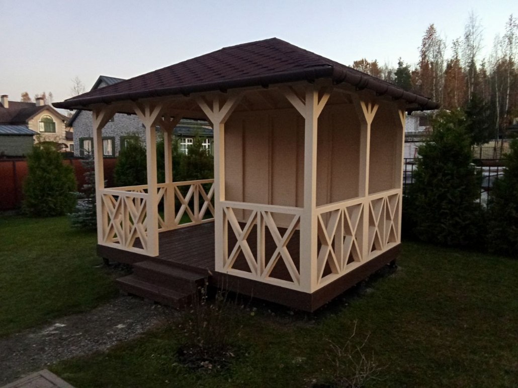 Беседка выполненная из лучших пород древесины, прослужит долгие годы и не потребует особого ухода и обслуживания. Специальные лакокрасочные материалы которые мы используем, предотвратят старение, гниение и заражение грибком конструкции кухни. Используемая огнебиозащита образует полупрозрачное полуматовое покрытие, стойкое к влаге, УФ-излучению, перепадам температуры и другим атмосферным воздействиям.