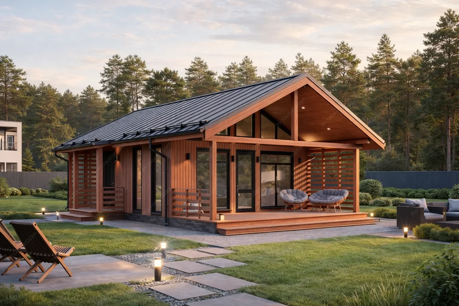 Садовые дома из хвойных пород древесины — это идеальное решение для обустройства загородного участка. Просторные и уютные, они отлично подходят для летнего проживания, выполняя функцию гостевого дома или компактной дачи, где можно с комфортом проводить тёплые месяцы вдали от городской суеты. В основе конструкции — массив сухой строганной доски камерной сушки и клееный брус, прошедшие тщательную обработку. Сорт древесины АВ по лицевой стороне обеспечивает чистую, эстетичную поверхность с благородной текстурой натурального дерева. Хвойные породы (ель и сосна) создают внутри особый микроклимат: воздух наполняется лёгким ароматом смол, а естественная способность древесины дышать поддерживает комфортный уровень влажности даже в жаркие дни. Такие постройки органично вписываются в любой ландшафт, не требуя массивного фундамента и сложного ухода. Внутреннее пространство может быть организовано по собственному усмотрению: от зоны отдыха до компактной спальни или столовой. Это полноценное жилое пространство, где каждая деталь продумана для того, чтобы пребывание на свежем воздухе было максимально комфортным. Капитальность конструкции, обеспеченная качественными материалами, гарантирует долгие годы эксплуатации. Садовый дом становится не просто постройкой, а любимым местом встреч с близкими и уединённого отдыха на лоне природы.