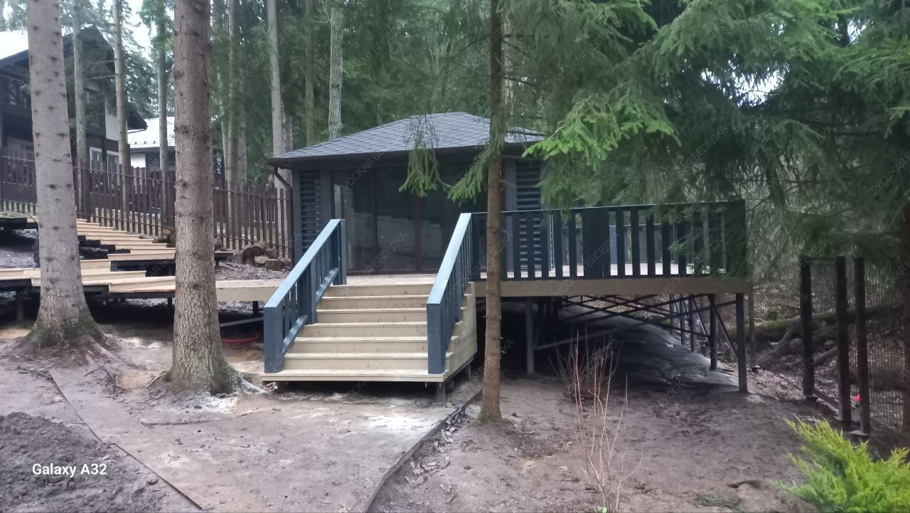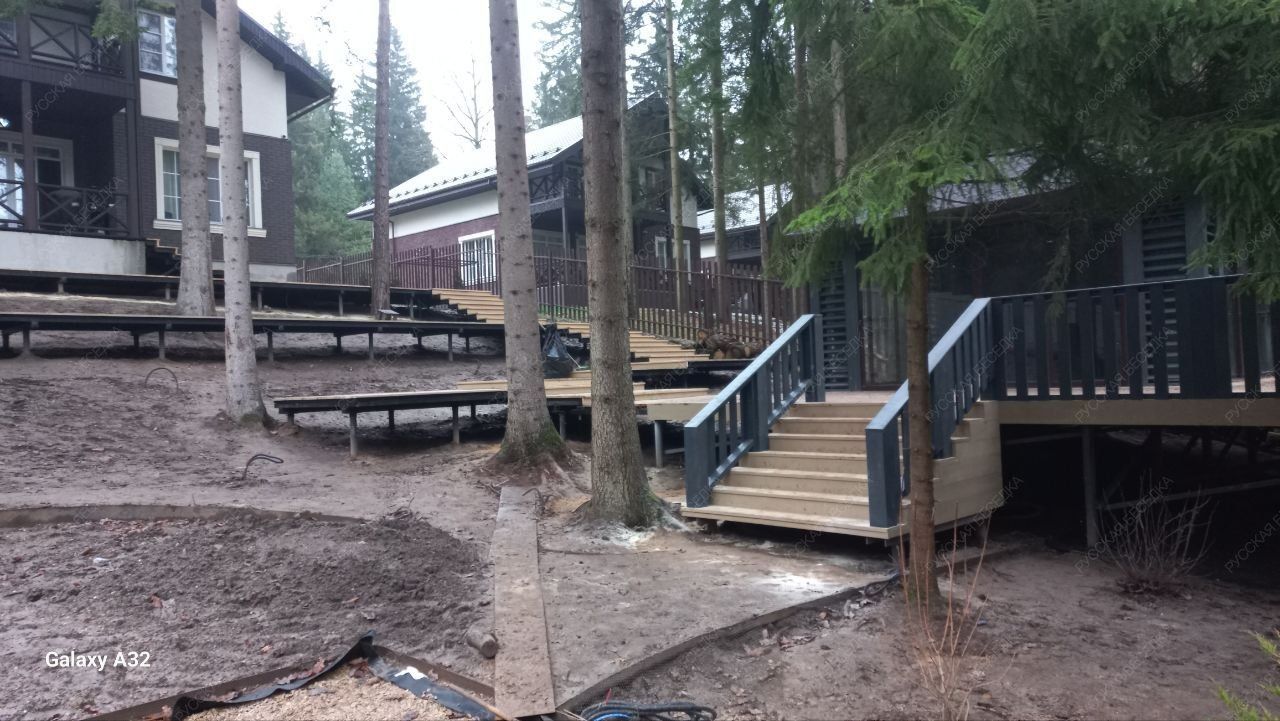 ДПК — это древесно-полимерный композит, современный материал, предназначенный для наружного применения в любых климатических условиях с самыми интенсивными нагрузками. Не подвергается короблению и растрескиванию. В процессе производства волокна древесины смешиваются с полиэтиленом низкого давления, добавками и красителями, что позволяет защитить их от воздействия бактерий и грибков, сохранить привлекательный вид изделия в течение длительного срока эксплуатации. При этом покрытию не нужны ни лак, ни специальная пропитка, ни другие защитные и декоративные средства.