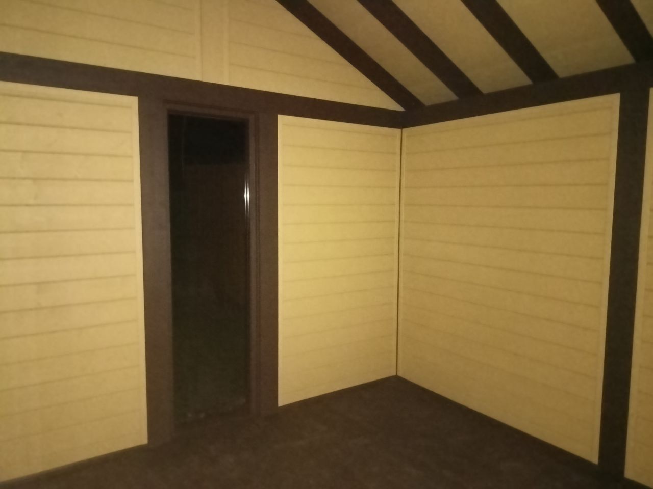 Потолок не подшит, видна стропильная система